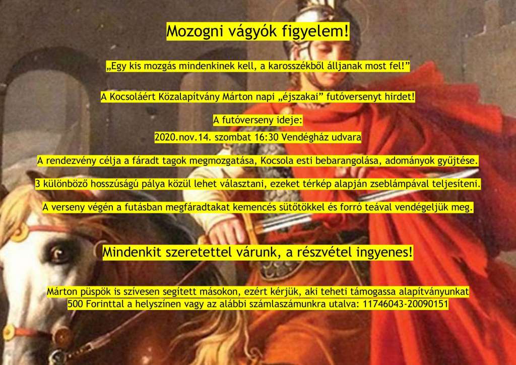 Posted on 2020.10.26. Készítő: hartungmartinMárton napi futóverseny Megosztás Facebookon(Új ablakban nyílik meg) Facebook Tetszik Betöltés... Kapcsolódó bejegyzések
